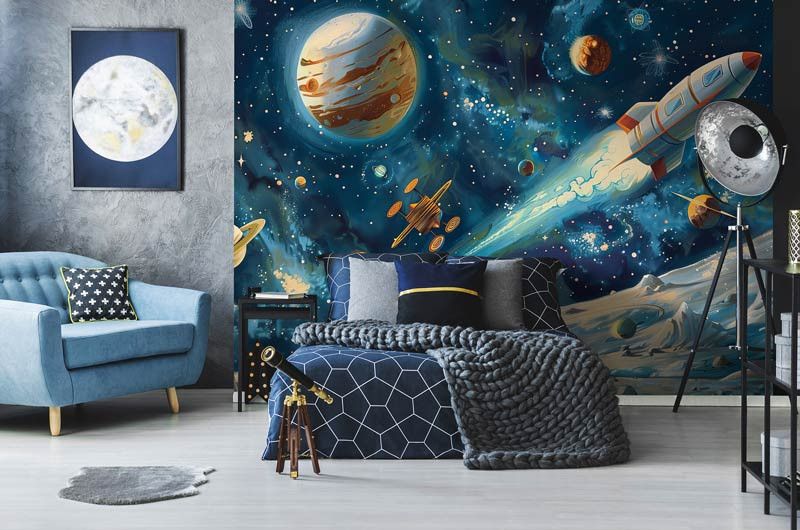 Ga op een avontuur door de ruimte met ons Fotobehang Space Adventure. Dit indrukwekkende fotobehang neemt je mee in de wereld van ruimtevaart, met betoverende planeten, glinsterende sterren en de oneindige ruimte als achtergrond. Perfect voor zowel de kinderkamer als de gamekamer, waar het de fantasie prikkelt en een gevoel van avontuur creëert.