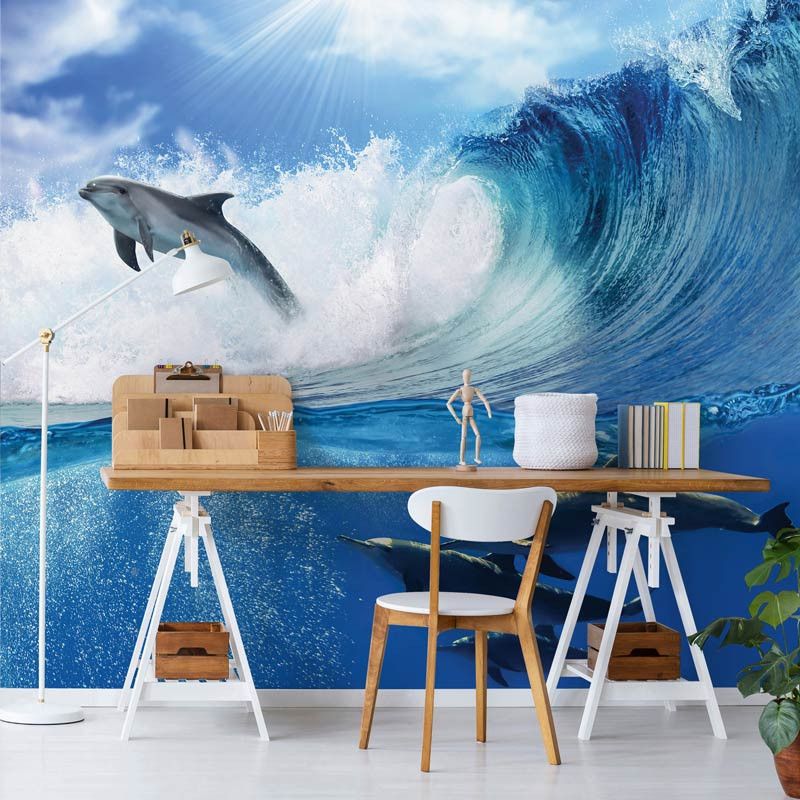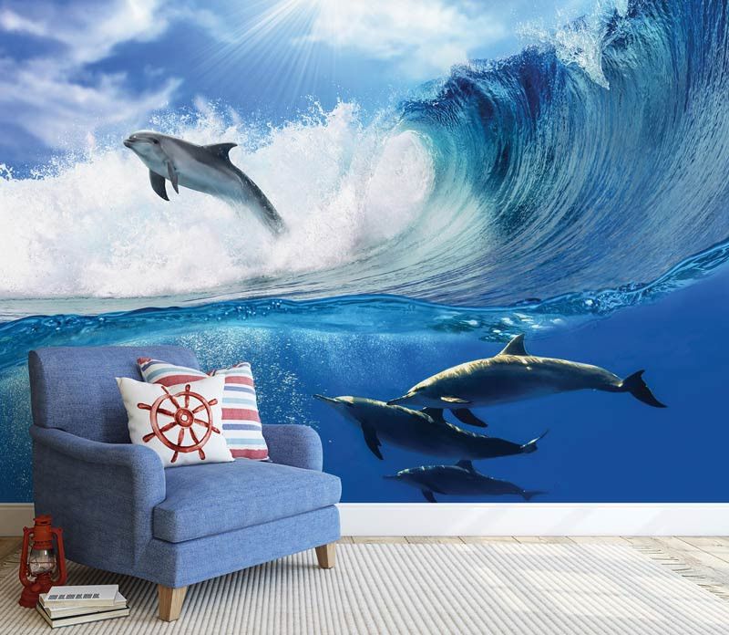 Met het fotobehang van de dolfijnen brengt u een echte blikvanger aan de muur en bovendien is het de perfecte aanvulling op iedere ruimte.