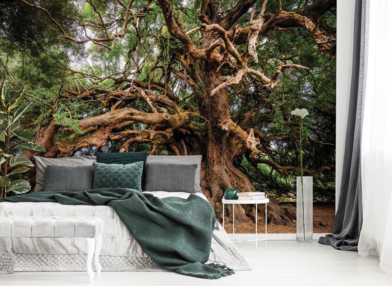 Fotobehang van een prachtige, oude boom die wel uit een sprookje lijkt te komen.