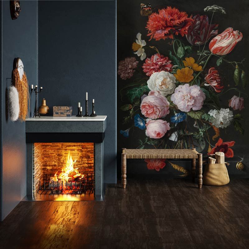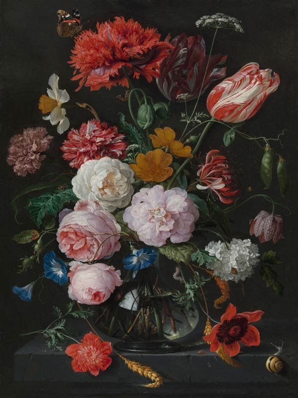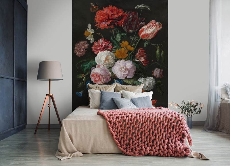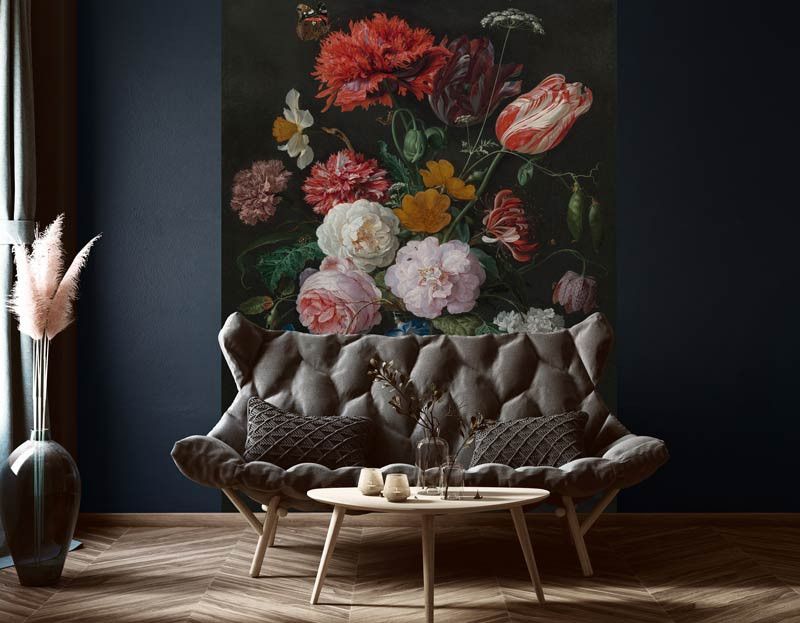 Fotobehang van het schilderij: Stilleven met bloemen in een glazen vaas. Het schilderij van de beroemde schilder Jan Davidsz. de Heem is te bezichtigen in het Rijksmuseum maar is nu ook bij ons, haarscherp op fotobehang te bestellen!