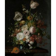 Fotobehang Stilleven met Bloemen in een Glazen Vaas | Rachel Ruysch