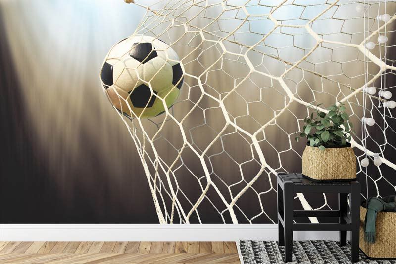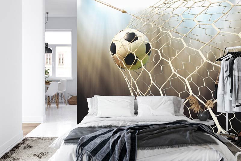 Voeg een vleugje sportieve magie toe aan de kinderkamer met ons fotobehang: strak in het net. Dit betoverende ontwerp legt het beslissende moment vast waarop een voetbal strak in het net van het doel zit. De scherpe details en levendige kleuren brengen de spanning van het spel tot leven en creëren een blijvende indruk.