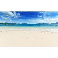 Ervaar de rust en sereniteit van Fotobehang Strand en Zee. Laat je betoveren door de kalme wateren en het uitgestrekte zandstrand, terwijl de golven zachtjes de kust strelen en de zon haar warme stralen over het landschap werpt.