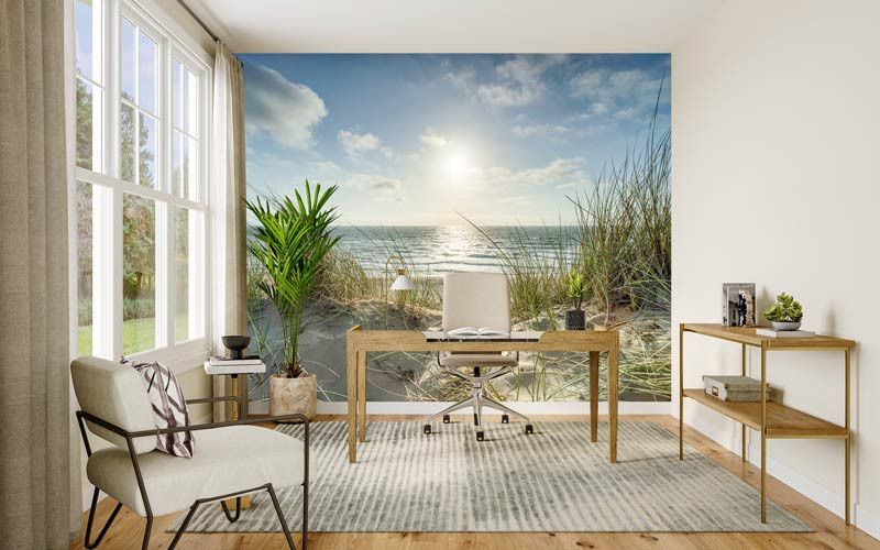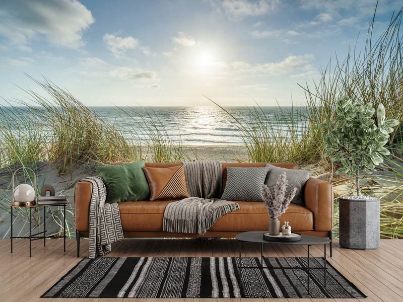 Het fotobehang Strand met Duinen en Zee zorgt voor een frisse en kalme uitstraling. Perfect voor de woonkamer, slaapkamer of kantoor, waar het de ruimte optisch vergroot en een zomers gevoel oproept.
