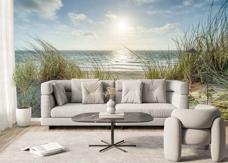 Je bestelt dit fotobehang eenvoudig op maat door jouw maten in te voeren en zelf het mooiste deel van de afbeelding te selecteren. Dankzij de hoogwaardige kwaliteit blijven de kleuren intens en komen alle details van strand, zee en duinen prachtig tot leven.