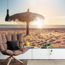 Geniet van de romantiek van een schilderachtige zonsondergang aan het strand met Fotobehang Strand Zonsondergang. Laat je betoveren door de warme kleuren van de ondergaande zon die de hemel en het water in vuur en vlam zetten.