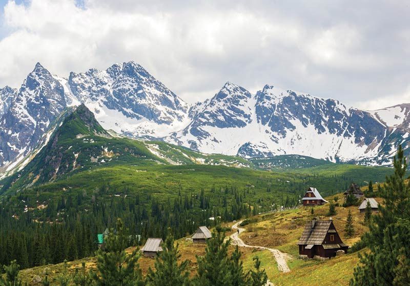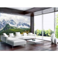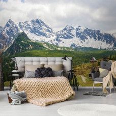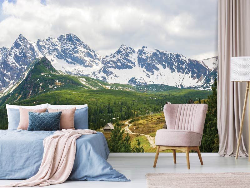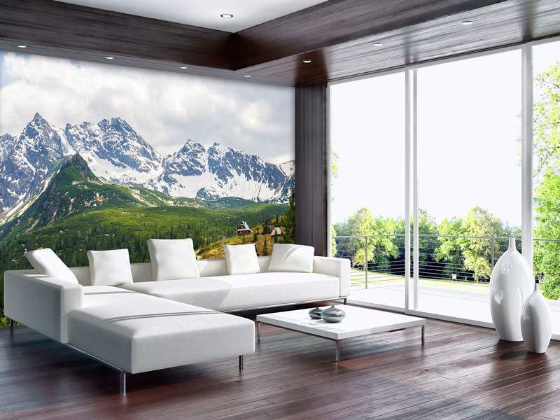 Vliesbehang met daarop de besneeuwde bergtoppen van het Tatra gebergte.