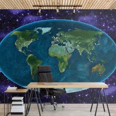 Fotobehang The Universe around the World Map.