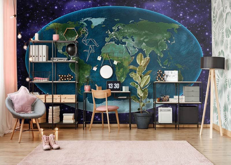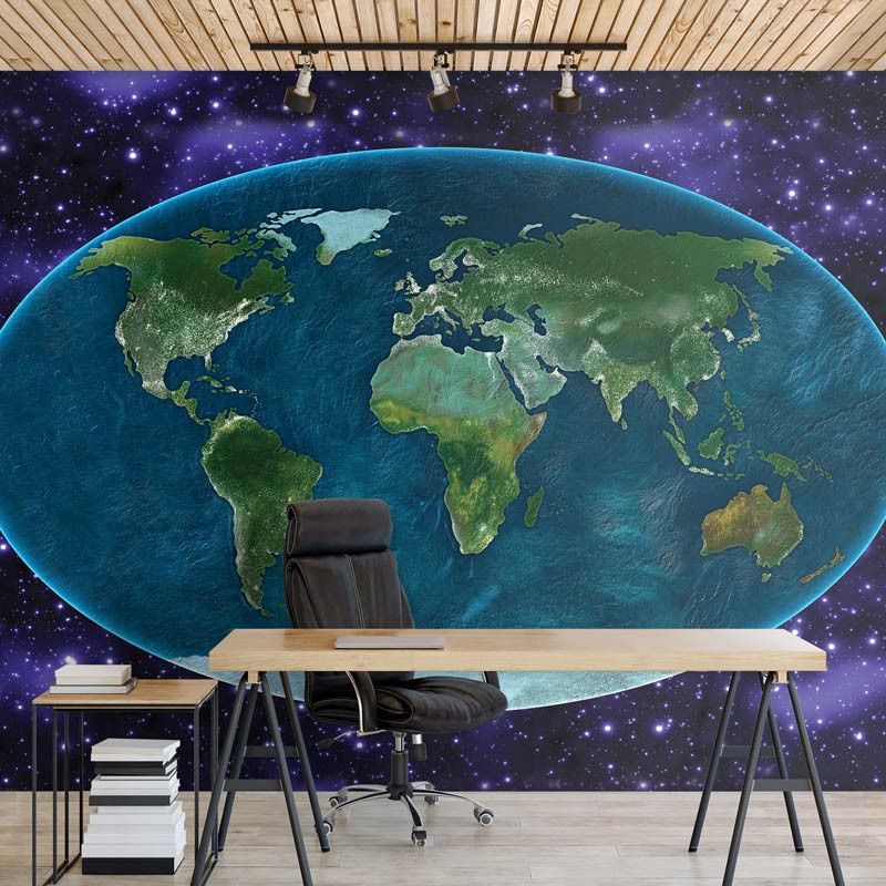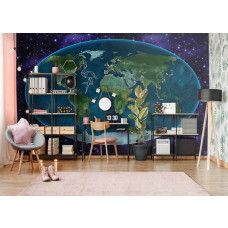 Vlies fotobehang van planeet aarde met daaromheen het universum.