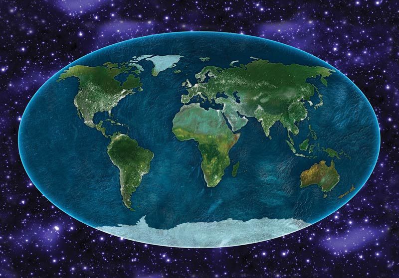 Fotobehang The Universe around the World Map