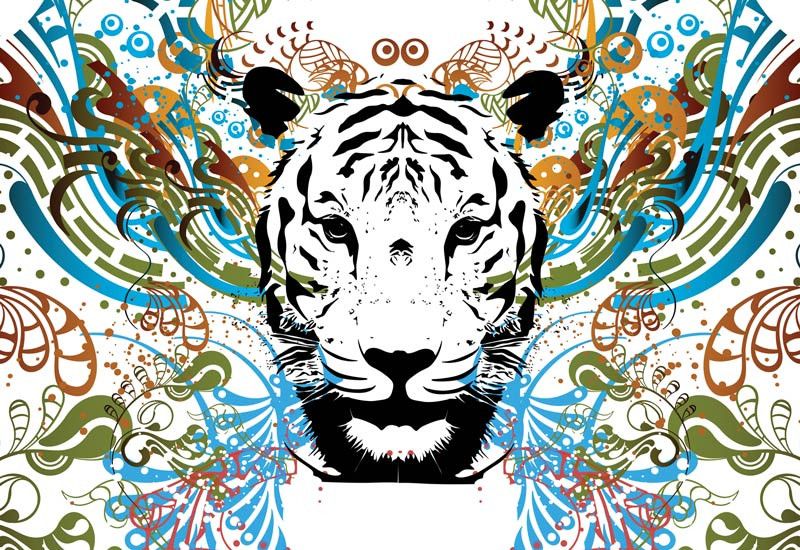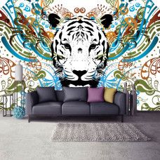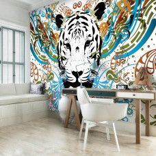 Fotobehang van een tijger in een prachtig kunstwerk.