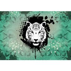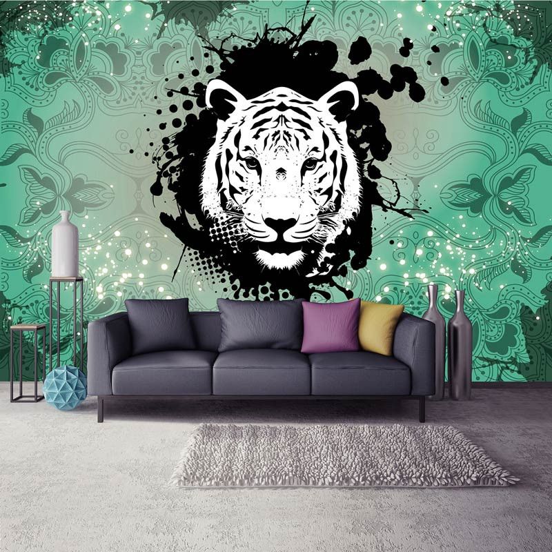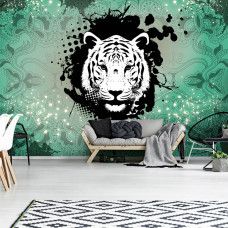 Fotobehang tijger kunst groen.