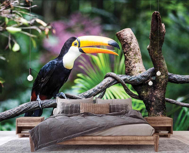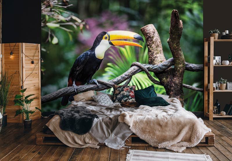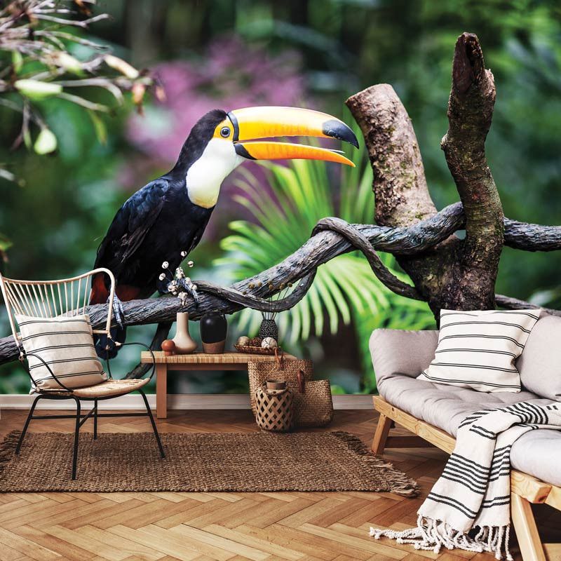 Haal de exotische pracht van de tropen naar je interieur met ons Fotobehang Toekan. Dit kleurrijke fotobehang toont een majestueuze toekan, waardoor een sfeer van avontuur en natuurlijke schoonheid wordt gecreëerd in elke kamer.