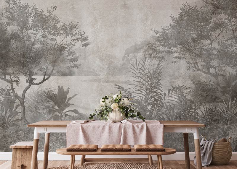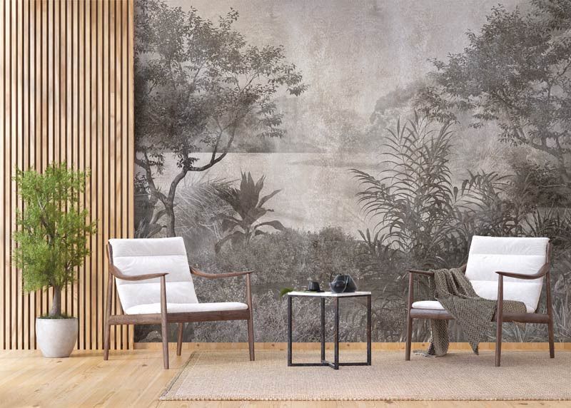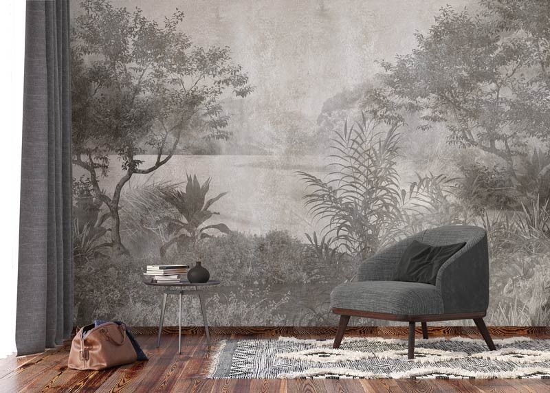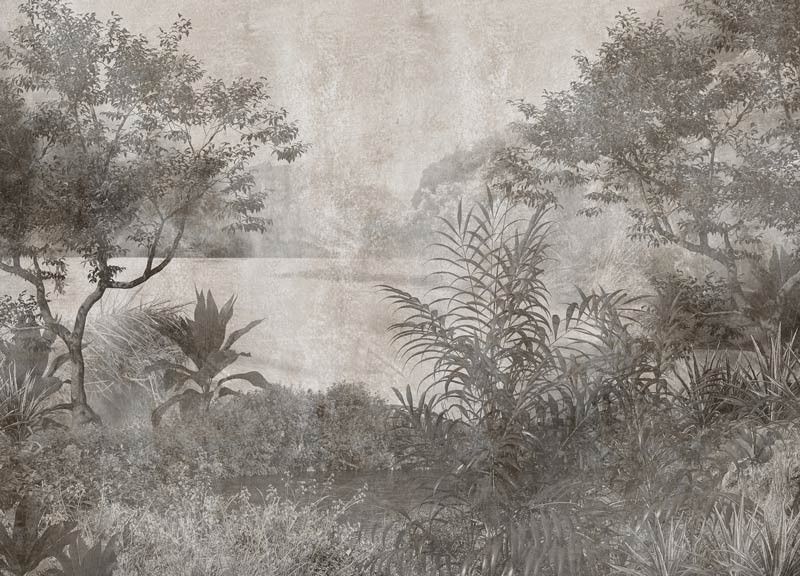 Haal een tropisch gevoel in huis met het fotobehang Tropisch Meer. De mooie natuur rondom het water in combinatie met de vintagestijl zorgen voor een exotische sfeer, alsof je zo het paradijs binnenstapt.