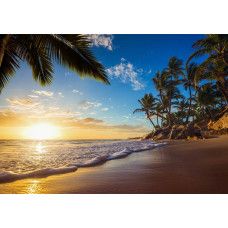 Zon, zee, strand en schitterende palmbomen. Dit populaire en tropische fotobehang brengt het paradijs bij je thuis.