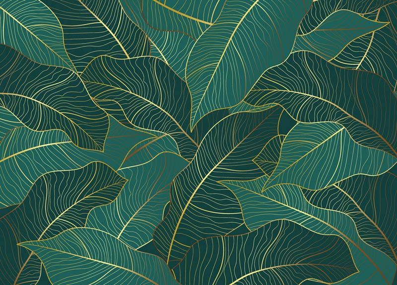 Fotobehang Tropische Bladeren in Smaragdgroen en Goud
