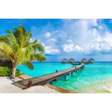 Verwen jezelf met een exotische ontsnapping met Fotobehang Tropische Vakantie Malediven. Laat je meeslepen door de betoverende schoonheid van witte zandstranden, kristalhelder water en wuivende palmbomen, waar de zon altijd schijnt en de zorgen van alledag ver weg lijken.