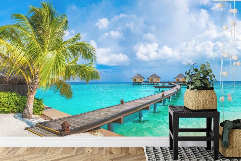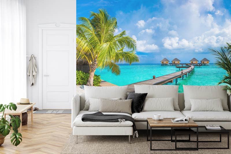 Ons fotobehang wordt met zorg afgedrukt op hoogwaardig materiaal, waardoor elk detail van de Maledivische paradijs tot leven komt. Bestel vandaag nog jouw fotobehang op maat en breng de tropische pracht naar binnen.