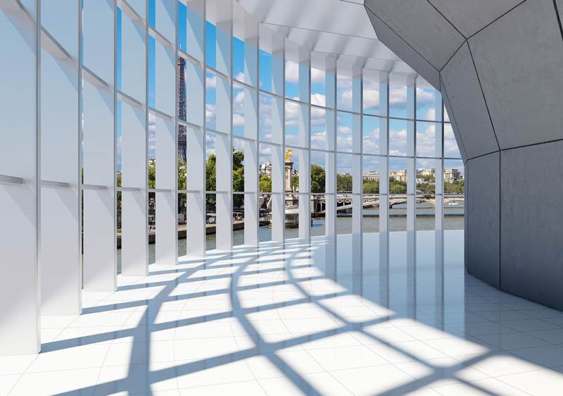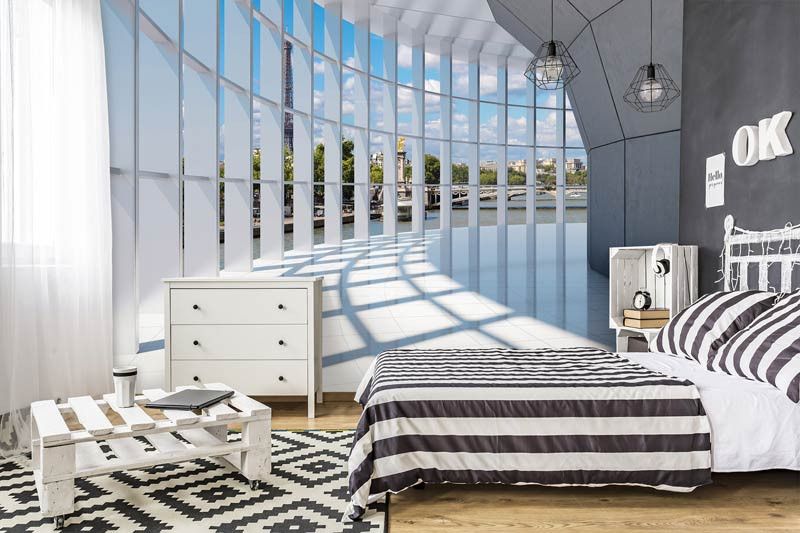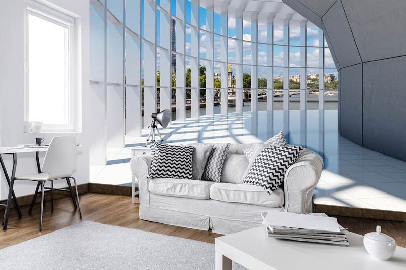 Vlies fotobehang van een 3D tunnel met uitzicht op de stad Parijs. Met die fotobehang lijkt het net alsof je in de Franse hoofdstad woont.