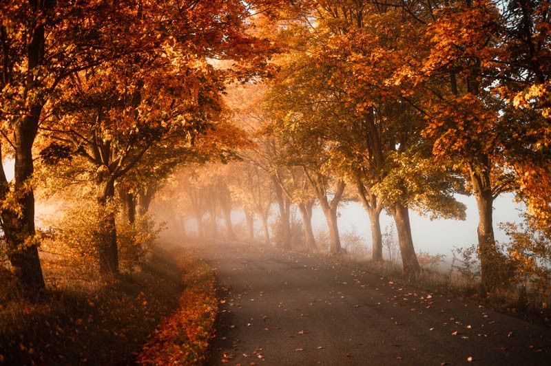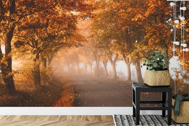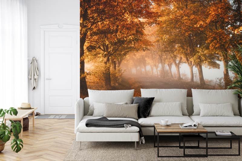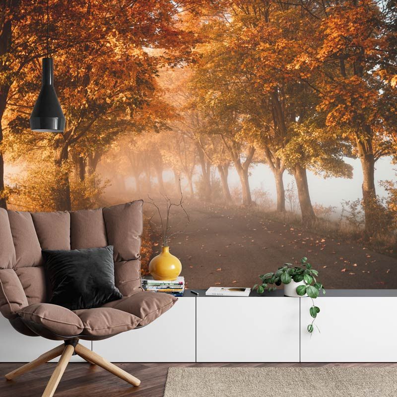 Creëer een betoverende sfeer in je woonkamer, slaapkamer of kantoor met Fotobehang Tunnel van Herfstbomen. Laat je betoveren door de warme kleuren van de herfst en de rustgevende aanblik van een tunnel van bomen die zijn gehuld in een zachte waas van herfstbladeren. Ervaar de rust en sereniteit van deze betoverende scène terwijl je wordt meegevoerd naar een wereld van rust en schoonheid.