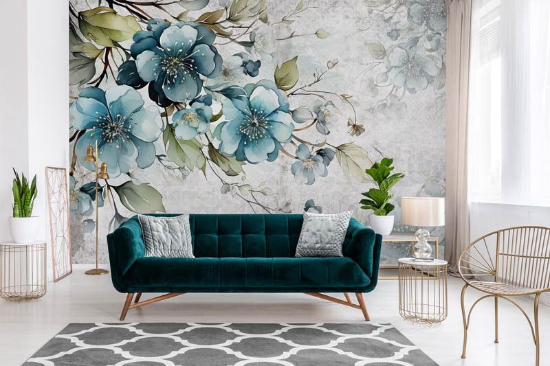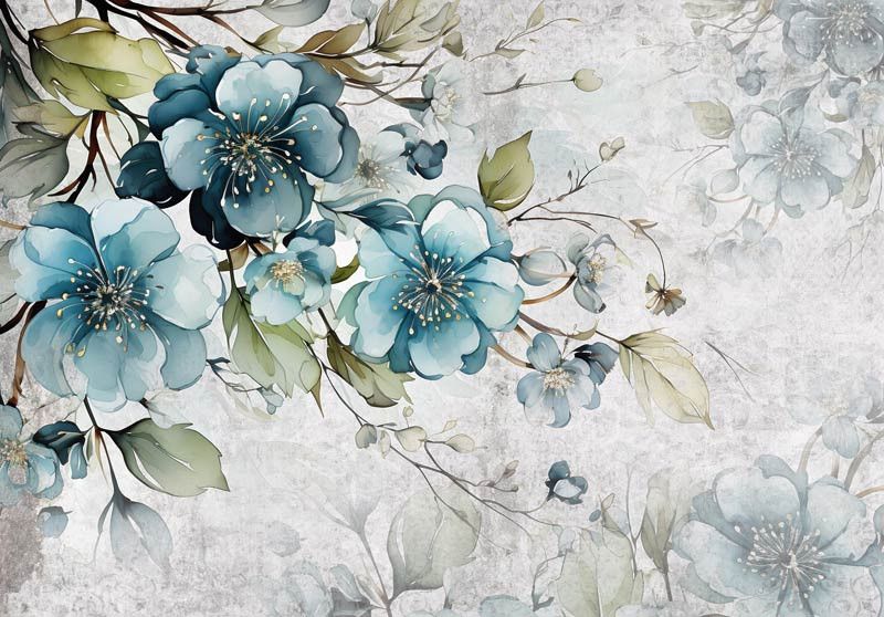 Fotobehang Turquoise Bloemen