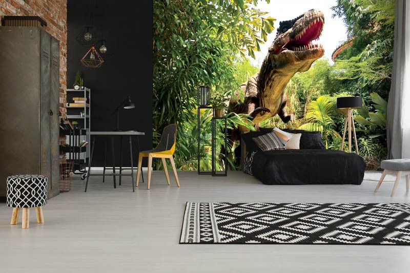 Het dino fotobehang is eenvoudig op maat te bestellen. Vul de gewenste maten in en selecteer het deel van de print dat het beste bij jouw ruimte past. Dankzij de levendige kleuren en haarscherpe details springt de imposante Tyrannosaurus Rex echt van de muur. Laat je kind dromen van een prehistorisch avontuur en creëer een inspirerende en avontuurlijke sfeer met dit prachtige fotobehang voor de kinderkamer.