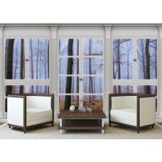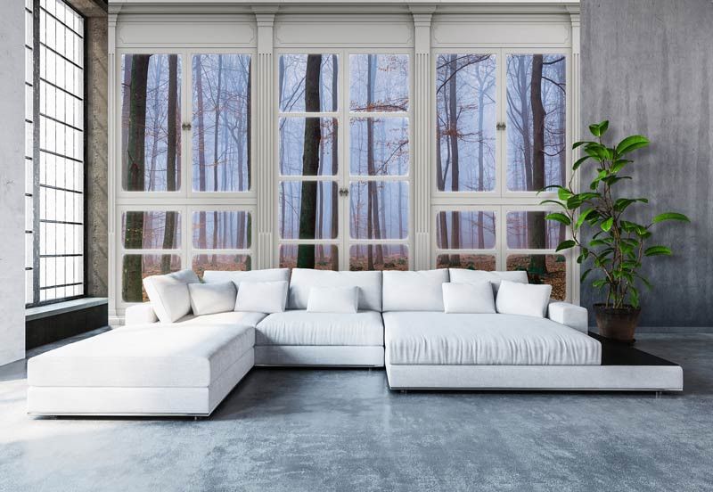 Fotobehang Uitzicht door het Raam op het Bos 3D Perspectief