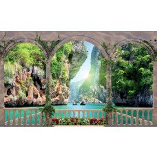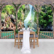 Fotobehang Uitzicht op de Rotsen vanaf het Terras 3D.