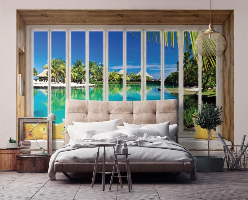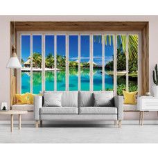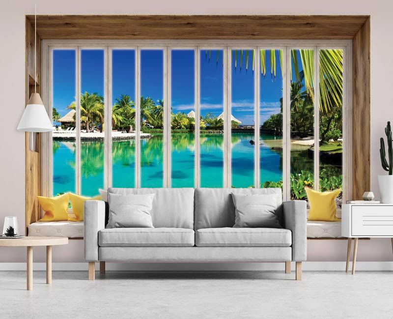 Fotobehang Uitzicht op Hawaii door het Raam 3D Perspectief