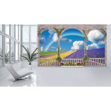Fotobehang Uitzicht op het Bloemenveld vanaf het Terras in 3D