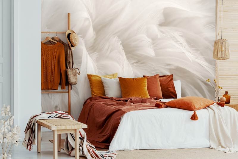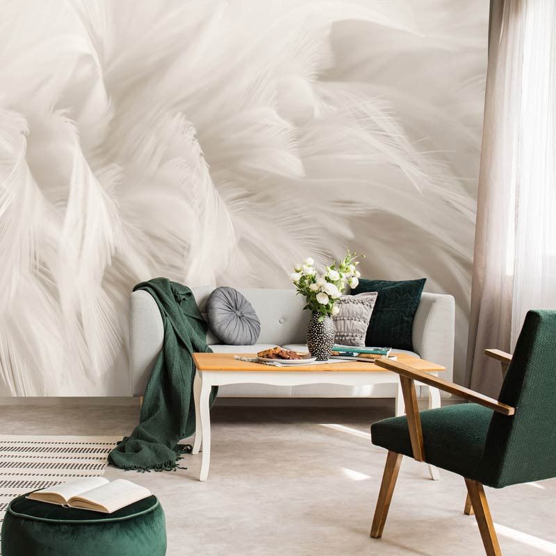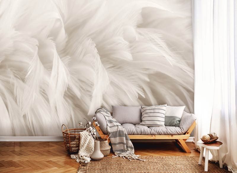 Voeg een stukje verfijning toe aan je interieur met ons veren fotobehang. Dit mooie ontwerp toont grote veren die zachtjes op de achtergrond lijken te zweven, waardoor een gevoel van beweging ontstaat in elke kamer. Ideaal voor de woonkamer, slaapkamer of zelfs een rustige werkruimte.
