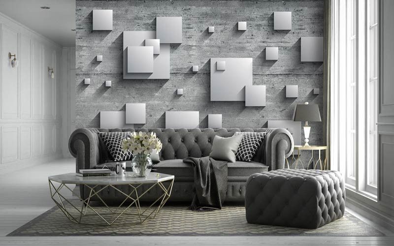 Vlies fotobehang van een geometrisch patroon, weergegeven in een abstracte vorm.