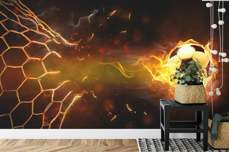 Transformeer de kinderkamer in een ware voetbalarena met ons levensechte voetbal fotobehang. Laat de passie voor de sport opbloeien terwijl een indrukwekkende scène van een doelpunt de muren siert. De scherpe details van de brandende voetbal die dwars door het net gaat en de heldere kleuren creëren een meeslepende sfeer die elke jonge voetbalfan zal betoveren.