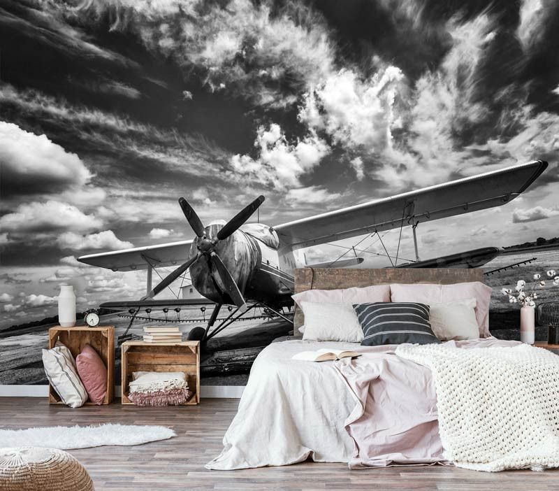 Het fotobehang van het vliegtuig is echte eyecatcher in de: woonkamer, slaapkamer, hobbykamer, keuken, hal, kantoor of iedere andere ruimte.