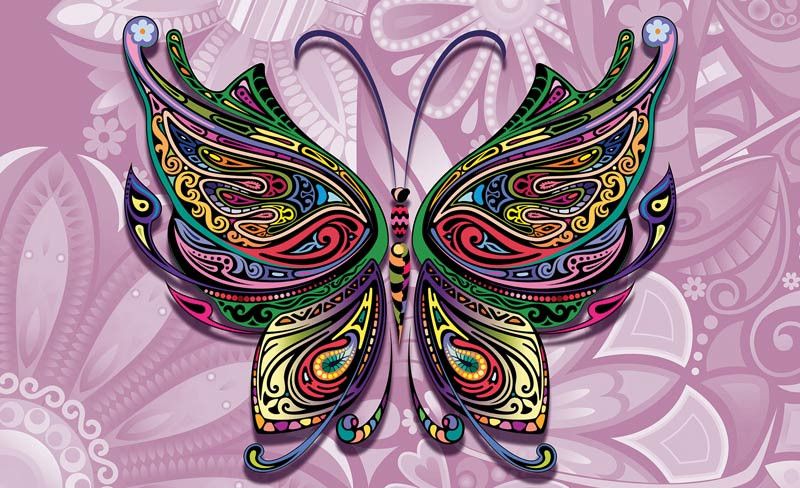 Fotobehang van een prachtig kunstwerk met daarop een schitterende vlinder.