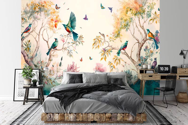 Breng de natuurlijke pracht van vlinders en vogels in huis met ons Fotobehang Vlinders en Vogels Aquarel. Dit kunstzinnige fotobehang, geschilderd in een levendige aquareltechniek, voegt een vleugje kleur en elegantie toe aan elke kamer. Perfect voor liefhebbers van natuurlijke schoonheid, ideaal voor de kinderkamer, slaapkamer of woonkamer.