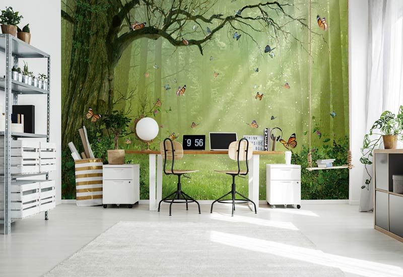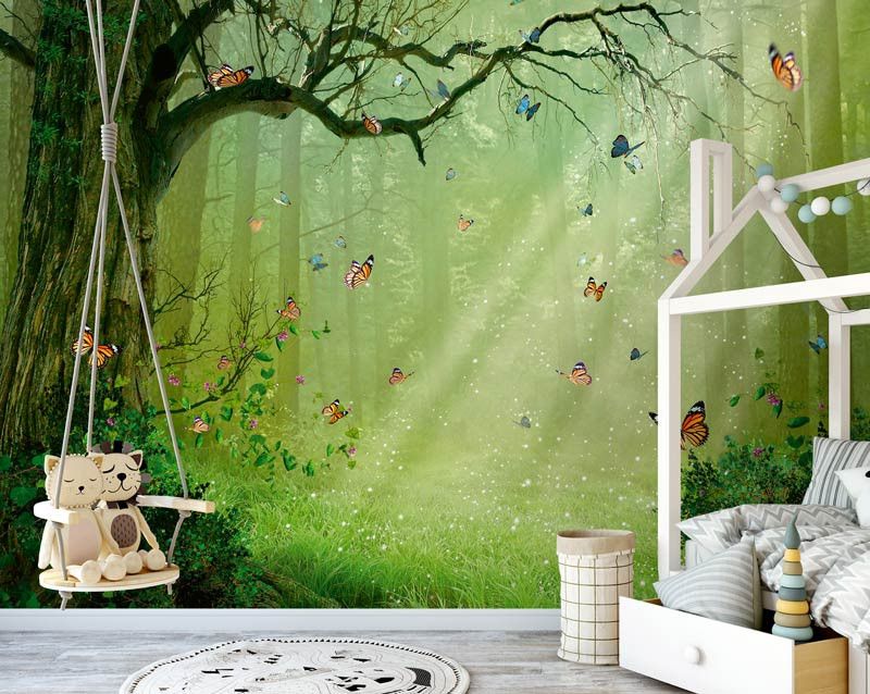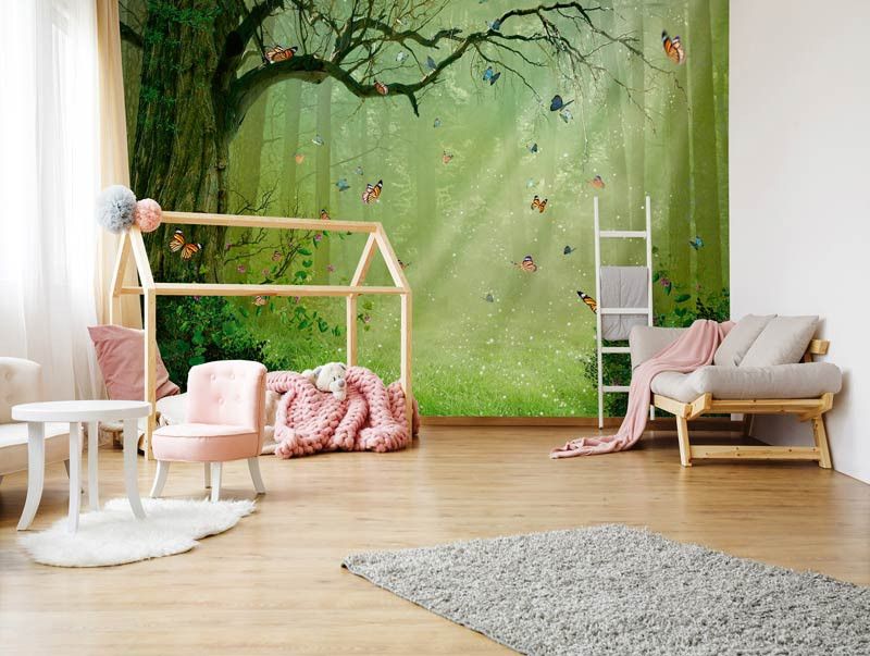 Laat je betoveren door de magie van ons Fotobehang Vlinders in het Sprookjesbos. Dit charmante fotobehang toont kleurrijke vlinders zwevend door een sprookjesachtig bos, waardoor een gevoel van verwondering en speelsheid ontstaat in elke kamer. Perfect voor kinderkamers, babykamers en speelruimtes, ideaal voor het stimuleren van fantasie en creativiteit.