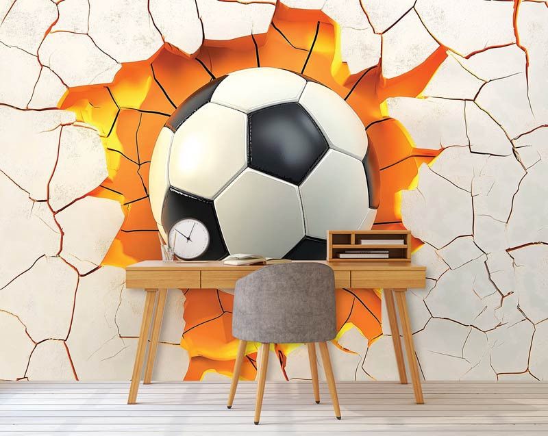 Het fotobehang voetbal door de muur is bijzonder geschikt voor een kinderkamer, meisjeskamer of jongenskamer. Bestel het fotobehang op maat en geef de ruimte een sportieve uitstraling vol energie en beleving.