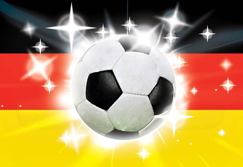 Vliesbehang van een schitterende bal met op de achtergrond: de Duitse vlag.