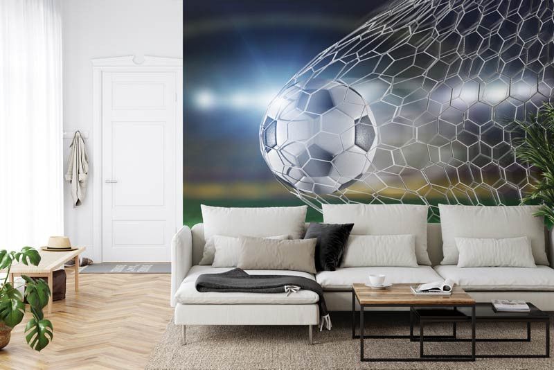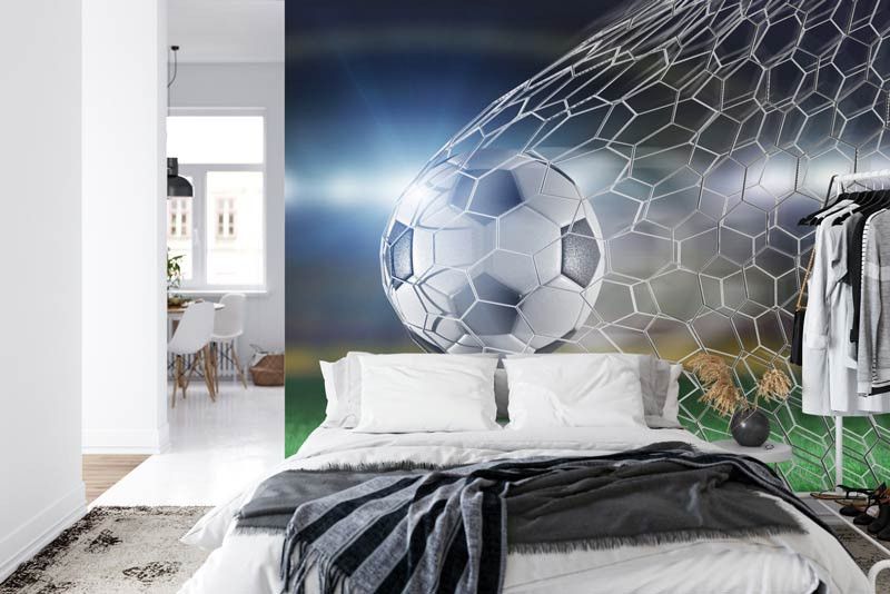 Breng de opwinding van een winnend doelpunt naar de kinderkamer met ons voetbal fotobehang. Dit fantastische ontwerp legt het cruciale moment vast waarop een voetbal strak in het net van het doel zit. De scherpe details en levendige kleuren vangen de emotie van het spel en brengen het naar de muren van de kinderkamer, slaapkamer of elke andere ruimte.