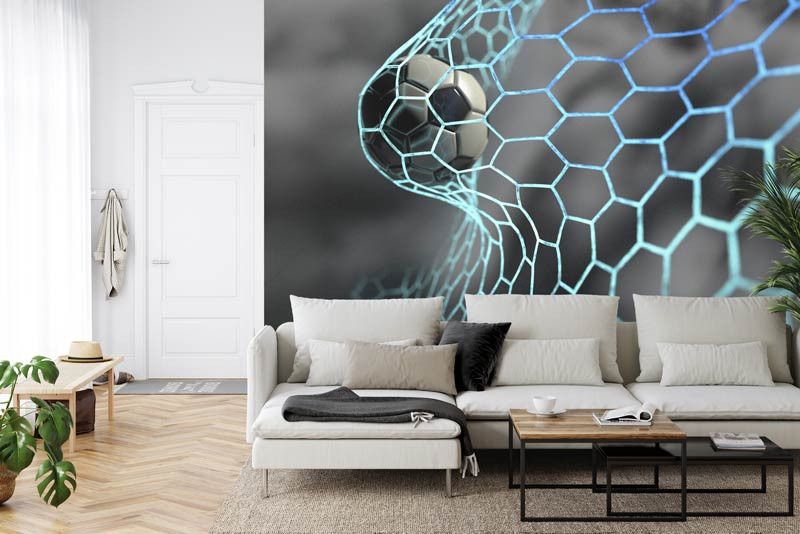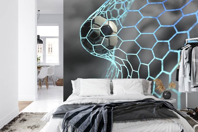 Haal de magie van een perfect doelpunt rechtstreeks naar uw ruimte met ons fotobehang voetbal in het net. Dit verbluffende ontwerp legt het cruciale moment vast waarop een voetbal triomfantelijk rust in het net van het doel. De gedetailleerde weergave en intense kleuren brengen de sensatie van het spel tot leven en creëren een blijvende indruk.