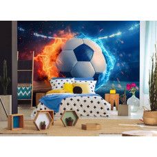 Breng de spanning van een intens voetbalduel naar je kamer met ons Fotobehang Voetbal in Vurig Duel. Dit krachtige ontwerp toont een indrukwekkende voetbal die lijkt op te gaan in vlammen, wat de energie en het vuur van een spannende wedstrijd perfect weergeeft. Ideaal voor liefhebbers van de sport, en een fantastische toevoeging aan de kinderkamer, gamekamer of zelfs een sportkantoor.
