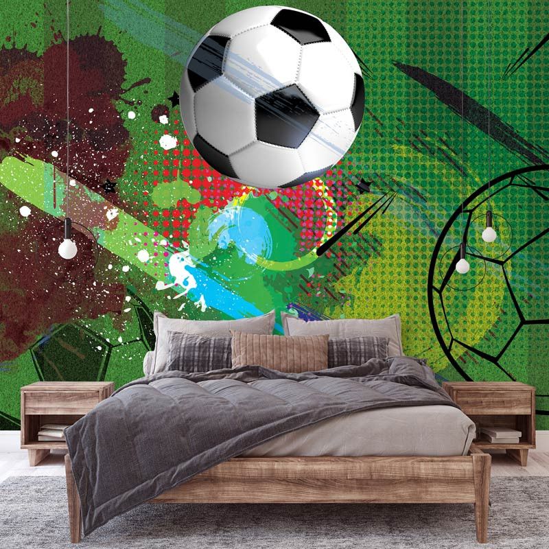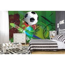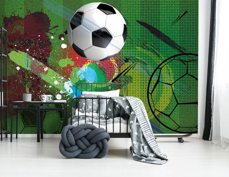Het fotobehang is eenvoudig op maat te bestellen, zodat het perfect aansluit op jouw muur. De levendige kleuren en scherpe details zorgen ervoor dat elk element van de graffiti, van de voetbal tot de gedurfde lijnen, volledig tot zijn recht komt. Een ideale keuze voor liefhebbers van voetbal die hun kinderkamer willen verfraaien met een uniek en kunstwerk.