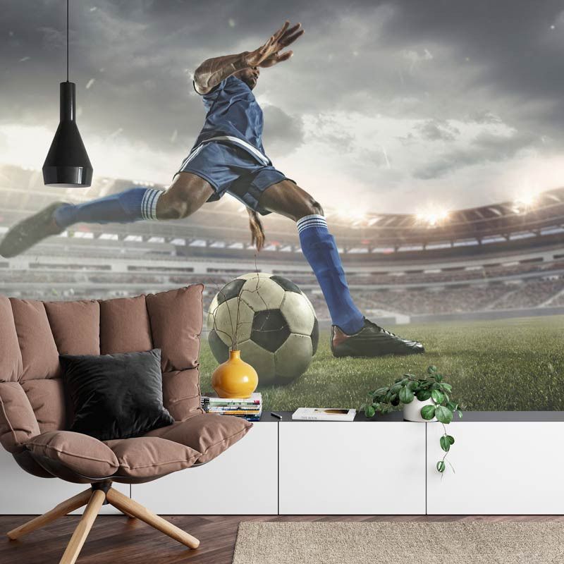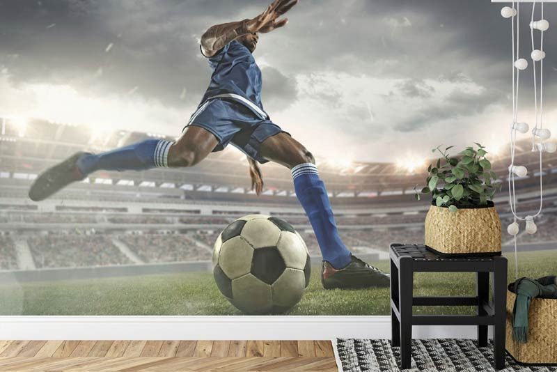Stel je voor dat je midden in de actie bent terwijl de voetballer de bal onder controle houdt in dit realistische en inspirerende kunstwerk. Of het nu voor de slaapkamer van een voetbalfan is of voor een sportbar, dit fotobehang zal de ruimte transformeren tot een dynamische en opwindende omgeving.
