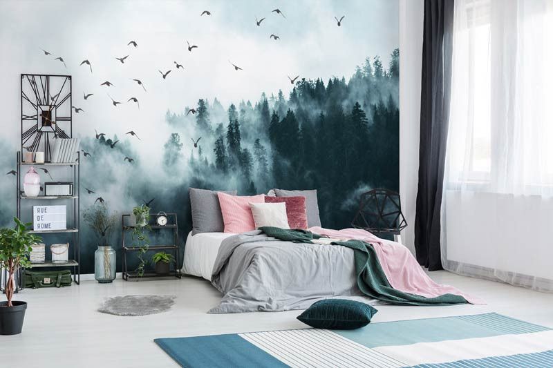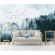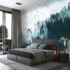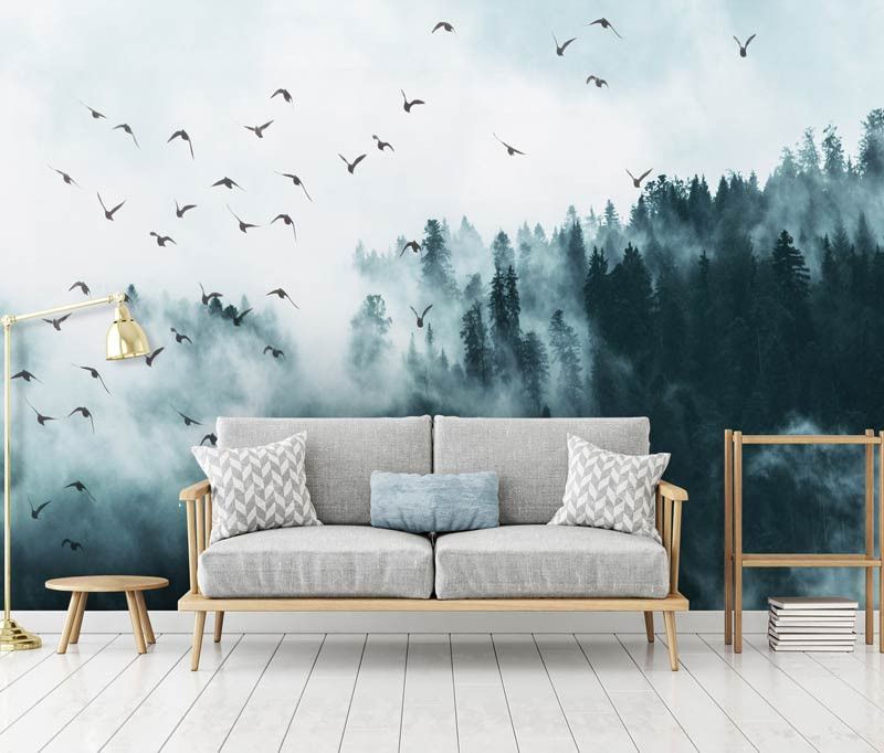 Het fotobehang van de vogels in de mist is een unieke aanvulling op elke ruimte.