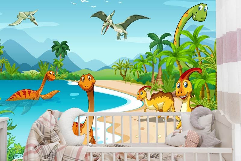 Geef je kleintjes de kans om te spelen en te fantaseren te midden van deze vrolijke dinosaurussen. Transformeer hun slaapkamer tot een magische plek waar hun verbeelding tot leven komt.