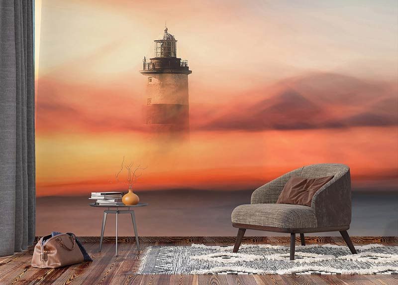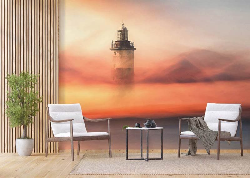 Laat je inspireren door de rustige sfeer van een vuurtoren in de schemering. De warme gloed van het avondlicht en de scherpe details van de vuurtoren geven een nostalgische en serene uitstraling.
