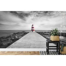 Laat je betoveren door de kustpracht van Fotobehang Vuurtoren op het Strand van Praia Da Rocha, Algarve. Ervaar de rustige schoonheid van het strand en de iconische vuurtoren die de horizon siert.