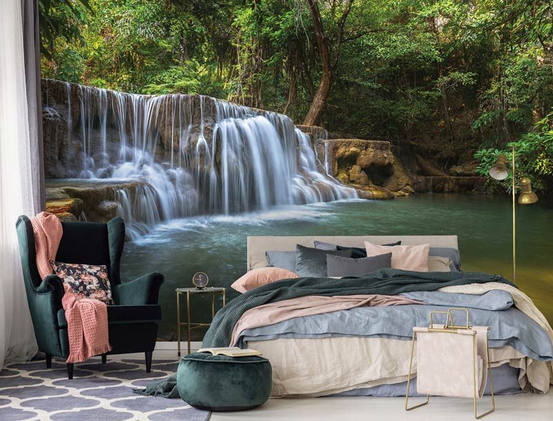 Het fotobehang van deze waterval is echte eyecatcher in de: woonkamer, slaapkamer, hobbykamer, keuken, hal, kantoor, horeca of iedere andere ruimte.