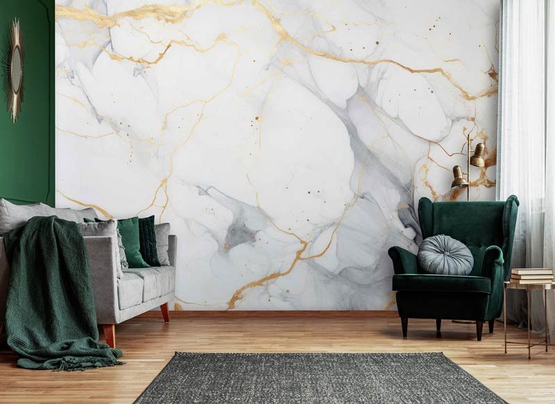 Voeg luxe en elegantie toe aan je interieur met ons Fotobehang Wit en Goud Marmer. Dit prachtige ontwerp combineert de tijdloze schoonheid van wit marmer met subtiele gouden aderen, ideaal voor het creëren van een stijlvolle en verfijnde ruimte.